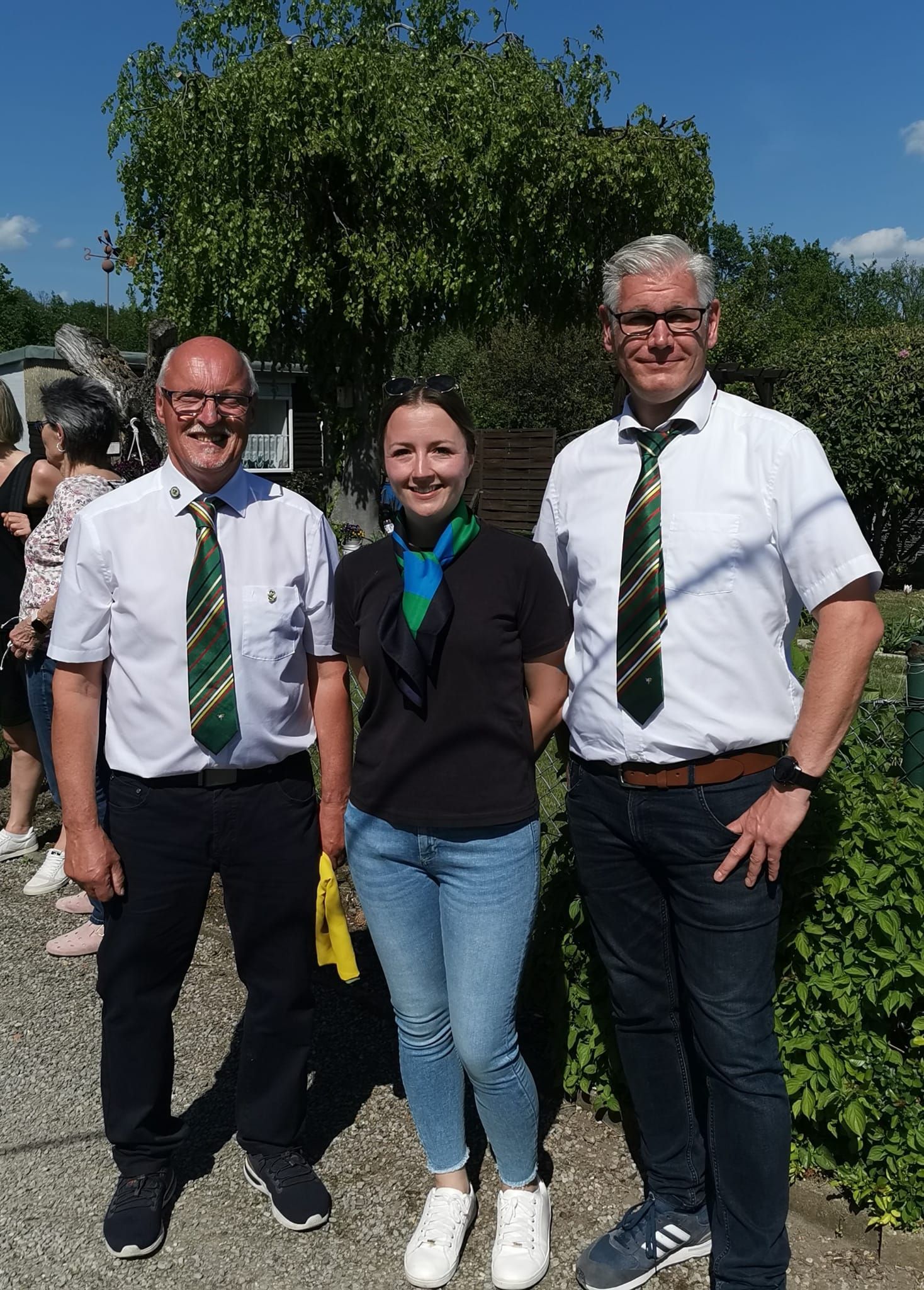 die Fahne weht nun dank Ingo und Olaf wieder hoch oben im Wind unserer Kolonie. Es war eine sonnige und feierliche Saisoneröffnung, Unter anderem waren Ehrenvorsitzender Heinz, sowie Ute und Norbert anwesend.